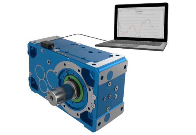 El nuevo Rossi TorqueMeter Es un sistema de medición de par extremadamente robusto y confiable para funcionamiento continuo. No se requieren modificaciones en su reductor, ya que este nuevo sistema de sensor de medidor de torsión se monta en el existente eje lento que utiliza tecnología de galgas extensométricas con el fin de proporcionar mediciones directas e inmediatas . Esto se consigue midiendo la torsión del eje proporcional al par aplicado. El uso de un sistema de telemetría permite un funcionamiento sin contacto ni desgaste y acceso permanente a los datos.